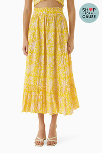 The Mysore yellow Skirt comes in a block printed fabric. The skirt is pleated and crafted in a soft cotton fabric.