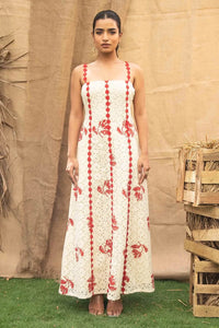 Introducing Thea, a gorgeous fit-and-flare maxi dress crafted from delicate schiffli fabric. The dress features beautiful paneling and is adorned with intricate floral lace, creating a perfect blend of elegance and femininity. THEA is the ultimate choice for a graceful and timeless look, whether for a special occasion or a chic evening out.