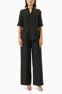 You can spend all day in the ever - versatile and wearable Thema Co-ord Set. Crafted in pure linen, this black ensemble is perfect for a formal gathering or an errand day around town.