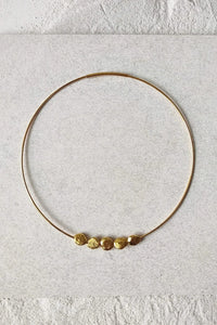 The Thio Golden Neckpiece features a sleek, modern design with a radiant gold finish. Its minimalist elegance makes it a versatile accessory, ideal for adding a subtle touch of luxury to any outfit.