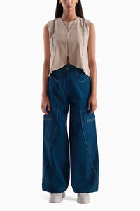 A sophisticated two-piece ensemble featuring a refined beige waistcoat paired with deep sea blue trousers. Crafted from premium materials, this luxurious set embodies timeless style and versatility.