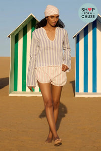 Our Toorji Top is designed using striped cotton fabric. It features full sleeves, drop shoulders, and a contrast colored piping, for a relaxed fit. It pairs well with all kinds of bottoms and makes for an apt summer pick.