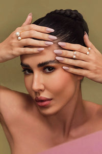 Our set of 3 rings is designed to make a statement, whether worn together or individually. Featuring white manufactured pearls, these adjustable rings are crafted from hypoallergenic brass and finished with luxurious 22k gold plating. A must-have piece for any jewelry collection!