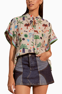 The Margot shirt is our 'Get ready in under 5 minutes' shirt. Boxy pattern, relaxed fit, finest cotton poplin and a quirky print - the shirt has it all! Wear it to your next outing, without giving it a minute's thought!