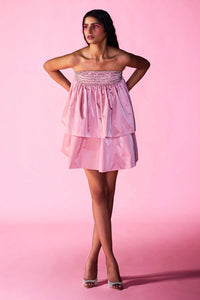 A dress that screams fun and fashionable. The voluminous look of the dress along with scintillating embellishments and a feminine hue adds drama to the silhouette, making it perfect for a fun day party or night out.