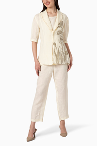 Tulip Pencil Off White Short Blazer with Inner and Pant