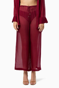Lightweight and effortlessly fluid, the Twilight Pants bring elevated ease to resort dressing. Crafted from a soft sheer fabric that moves with the breeze, these pants are tailored with a relaxed silhouette and an adjustable drawstring waist for a flattering and flexible fit. Whether you’re poolside or headed to a beachside dinner, they slip seamlessly over your swimwear or layer with pieces from the resort collection.