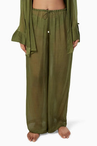 Lightweight and effortlessly fluid, the Twilight Pants bring elevated ease to resort dressing. Crafted from a soft sheer fabric that moves with the breeze, these pants are tailored with a relaxed silhouette and an adjustable drawstring waist for a flattering and flexible fit. Whether you’re poolside or headed to a beachside dinner, they slip seamlessly over your swimwear or layer with pieces from the resort collection.
