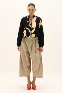 Relaxed wide-leg pants crafted in khadi fabric designed with a draped silhouette and pleated detailing for added volume and movement. The cropped length and deep side pockets lend a utilitarian yet fluid appeal, perfect for effortless styling.