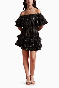 Dazzle the night in our black shimmery dress – the ultimate party outfit this season. With flared sleeves and a twirl-worthy fit that hits just above the knee, this midi dress is set to become your wardrobe staple. Elevate your style and make every moment twirl-worthy in this stunning piece.