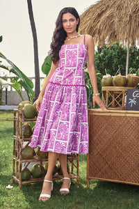 Slip into the Ula Midi Dress and embrace the rhythm of resort living. Designed for sun-drenched adventures, this breezy piece features a square neckline, sleeveless silhouette, and delicate wavy lace straps for a touch of whimsy. The fit-and-flare shape with a drop waist and soft pleats creates graceful movement, while wavy lace detailing adds a feminine finish. Fully lined and secured with an invisible zip at the center back, it’s the perfect companion for beach bar hops, coastal strolls, and everything in between.