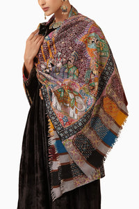 Handwoven from pure pashmina wool, Ulwi shawl boasts intricate Kalamkari work in a bold and captivating style. Featuring oversized design elements, it's a striking statement piece brimming with cultural heritage.
