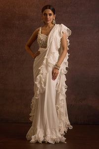 Umika Ivory Pearl Blouse With Ruffle Saree