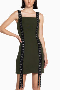 Introducing our Utility Mini Dress, designed with a hook & eye closure strap for a stylish and functional touch. The dress features a sleek metal zipper closure at the back, ensuring a secure fit and adding a modern edge to its utilitarian charm. Perfect for both casual outings and evening affairs, making it an essential piece for your wardrobe.
