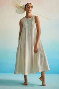 A gentle interplay of structure and softness, the Utsuroi Panelled Yoke Dress is an ode to quiet transitions. Crafted in a cotton silk blend, it features hand screen printing, appliqudetailing on the yoke, and buttons. Seam bindings and a soft box pleat add to its refined finish. Designed to flow effortlessly, it can be styled as a dress or a coord set versatile, elegant, and thoughtfully made.