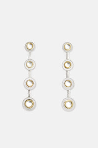 The Valliyan Polki 4 Dot Earrings showcase a minimalist yet elegant design with four shimmering Polki stones set in a silver-toned base. Crafted from copper and brass, finished with 22k gold and white rhodium, these earrings add subtle sparkle to everyday and special occasion looks.