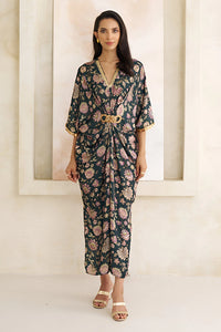 Our classic best seller striking a balance between contemporary and cultural wear, this kaftan has handwork onn the neck and sleeves and a simple brooch to accentuate the silhouette.