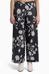 Vanmala, a charcoal-tea voile pants featuring a timeless quilted texture with tea dots, accented by delicate French knots at the hem.