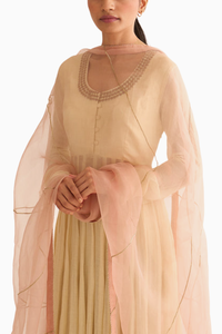The organza dupatta adds a texture of gossamer, matching splendor with softness.