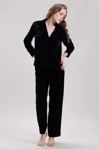 Indulge in luxury with the Velvet Nightwear Shirt and Pajama Set, designed for ultimate comfort and elegance. Crafted from plush, high-quality velvet, this set features a relaxed-fit button-down shirt and matching elasticized pajama pants for effortless wear. The rich velvet fabric feels irresistibly soft against your skin, making it perfect for cozy nights in or stylish lounging. With a timeless silhouette and premium finish, this set exudes understated glamour while ensuring a comfortable, relaxed fit. Ethically made in our atelier, it’s a chic essential for your nightwear collection.