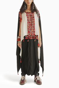 Elevate your look with the Venika Top Set. It features an anti-fit double colour top with embroidered neck patch and tribal tassel detail paired with drape trouser.
