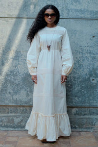 The Vera Dress is a timeless silhouette crafted in crisp, breathable BCI cotton poplin. Designed with delicate pintuck details across the yoke and skirt, this dress features a gently gathered waist, voluminous sleeves, and a tiered hem with subtle ruffles for a touch of romance. An easy day-to-evening piece, the Vera Dress brings refined ease to your everyday wardrobe.