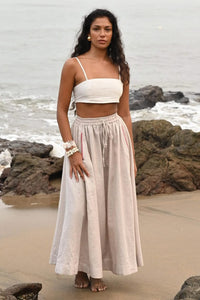 Introducing the Verve Maxi Shirt, a stylish maxi skirt designed for comfort and elegance. Featuring an elasticated waist for a perfect fit, this skirt includes front pockets adorned with beautiful embroidery detail. Perfect for both casual outings and special occasions, it's a versatile addition to your wardrobe!