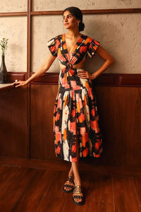Step out in style with our calf-length Vienna dress featuring ruffled sleeves, an open waist, and a chic buckle detail. Perfect for any occasion, it effortlessly combines elegance and modern flair. Pair with heels and a statement bracelet to complete the look.