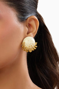 Elevate your style with our Vine Round Studs from the Chic Amour Collection. These white enamel studs are a statement piece that will make you stand out at any event. From desk to dinner, these versatile studs are the perfect addition to your jewelry collection. Embrace the love affair with Paris and add a touch of elegance to your AM to PM look.