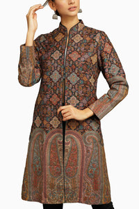 This is our Latest autumn winter launch. This is a vintage coat in classic paisley rich design. This Fabric is fine wool with Silk.