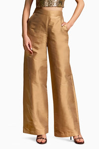 Step out in style with these straight wide-leg Vista pants, designed with convenient side pockets and a sleek zip closure for easy wear. Perfect for festive occasions, offers a chic silhouette that pairs beautifully with the Radiance top.
