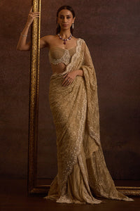 Vyom Beige Bustier Pre Draped Lehenga Saree Set