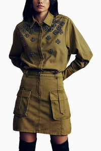 Forever essential and just as versatile, this shirt has sculptural look, it’s been made from our luxe cotton tencel fabric, cuffed long-sleeves with embellished detailing at front for added dimension