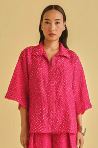 Watermelon Crushed Bandhani Collar Shirt