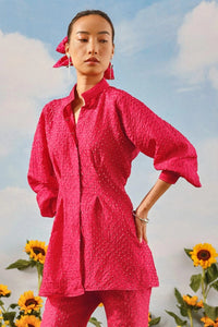 Watermelon Crushed Bandhani Pintuck Dress Shirt