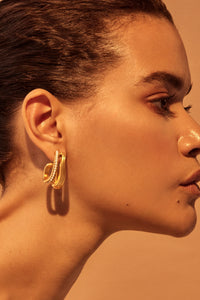 The Wave Hoops are a beautifully crafted accessory that combines elegance with a touch of contemporary flair. Featuring delicate white pearls, set in hypoallergenic brass, these hoops are designed for comfort and durability. The sterling silver posts ensure a secure fit, while the 22k gold-plated finish adds a rich, radiant shine. Their wave-inspired design makes these earrings a perfect choice for adding a sophisticated yet playful element to any outfit.