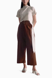 The Tail Set from Mo by Meet features a refined design in handwoven cotton with a warm brown and off white tone. Its clean lines and versatile silhouette make it ideal for both casual and semi-formal wear, offering effortless style and comfort. The breathable fabric ensures a natural feel, while the timeless color adds sophistication to the ensemble.
