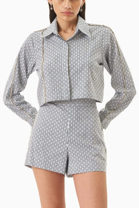 The Woven Cotton White and Blue Stripes Embellished Crop Shirt is a fresh and stylish take on classic stripes. Crafted from lightweight, breathable woven cotton, this shirt features a crisp white and blue stripe pattern that exudes a clean, nautical vibe. The embellishments add a touch of sparkle and dimension, elevating the design with subtle detail. Perfect for warm-weather days, this crop shirt offers a chic, casual look with a modern edge, ideal for pairing with high-waisted jeans or skirts for a versatile, trendy outfit.