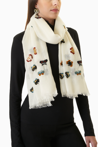 Our collection of Shawls in 100% Merino Wool for modern and resourceful women. The entirely embroidered scarf of multi color butterflies is characterized by a size of 70 x 180 cm which adds a bit of playfulness and elegance to any outfit. Perfect to be wrapped around the neck and wear it in a casual and contemporary way.