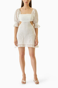 Composition-Material: Cotton, Lining: Cotton voile Color: White Fit: A Line Size Guide: Measurements in the size guide are ready garment measurements The model is 5'10 inches tall and is wearing size UK8. Components: 1 Product Code : SVEVERA1015