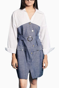Featuring White Chambray Wrap Dress by Alan by Vani from Sky is High Collection. Meticulously crafted in poplin and chambray, this beautiful wrap dress is accentuated with pockets and a belt, combining style and functionality for a versatile wardrobe staple.