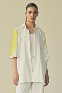 Composition- Viscose Polyester blend with Spandex Color- White Fit- Oversized Components- 1 Product Code- SVESOMYASGS07C24