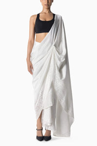 Composition: Dupion 80 Color: White Fit: This sari fits true to size, takes the shape of your body as it is a drape. The sari is high waisted, get it according to your high waist size. The blouse is cut for a slim fit. Components: 1 Product Code: SVE431882241601