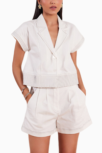 Crafted using luxurious, long-lasting denim, this jacket features a blue cording detail that adds the perfect pop of color. Its timeless shade makes it easy to pair with all your favorite summer looks.