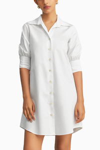 The White Egyptian Cotton Short Shirt Dress is a perfect blend of casual chic and comfort, tailored for versatility and effortless style. Crafted from premium Egyptian cotton, renowned for its softness and breathability, this dress offers a lightweight and cool feel, ideal for warmer weather or relaxed settings. he White Egyptian Cotton Short Shirt Dress is a wardrobe essential that effortlessly combines comfort with timeless style, making it a versatile piece suitable for various occasions and settings.