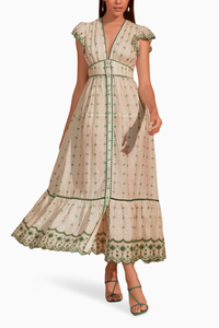Made from 100% linen, we’re thrilled to reintroduce our beloved Estella this season with a fresh, running embroidered style. Adorned with a green 'palm' motif embroidery that gracefully runs across the body, and featuring eye-catching scallop details on the hem and sleeves, this piece is a perfect homage to our love for white linen in the summer. Elegant yet effortless, the Estella is ideal for adding a touch of seasonal charm to your wardrobe.