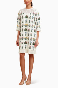 Structured and yet delicate. Beautifully crafted in premium crepe jaw dropping embroidery and lace detailed neckline makes this flattering dress a heads turning statement.