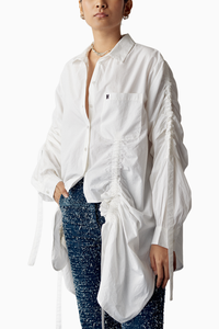 Featuring the White Gathered Shirt by Mellowdrama. Immerse yourself in the softness of cotton as you flaunt this elegant piece in pure white, showcasing a gathered design for a touch of sophistication.
