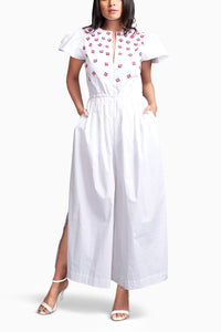 Featuring White Jumpsuit With Embroidery by Deepika Arora. A backless jumpsuit with cutwork embroidered yoke.