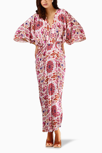This dress in our exclusive Kashan Print handloom banana silk fabric is draped to perfection. Perfect for night outs, or any events. It makes you look like a celebrity. Pair it with your heels and you are sure to turn heads.